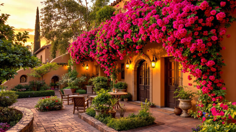 Dans l’aménagement extérieur d’une hacienda maison, l’utilisation d’éléments naturels est primordiale. Créez des zones ombragées avec des pergolas en bois, recouvertes de plantes grimpantes, pour profiter des journées ensoleillées. Les trésors artisanaux, comme les lampes en céramique ou les paniers mexicains, peuvent être intégrés dans la décoration extérieure pour renforcer l’authenticité de l’espace. En ajoutant des serres de jardin, vous prolongez l’espace de vie tout en cultivant un coin de verdure, idéal pour le jardinage et l’esthétique. En somme, l’aménagement extérieur d’une hacienda maison nécessite une attention particulière aux détails, tant sur le plan esthétique que fonctionnel. En harmonisant les espaces extérieurs avec la nature, vous créerez un lieu de vie idyllique, propice à la détente et à l’évasion.