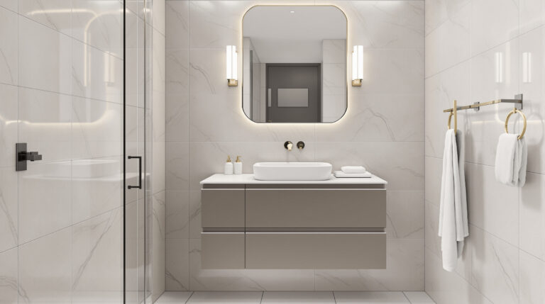 Prendre le temps de bien planifier la hauteur de la vasque lors de la conception de votre salle de bain est essentiel pour allier style et praticité.