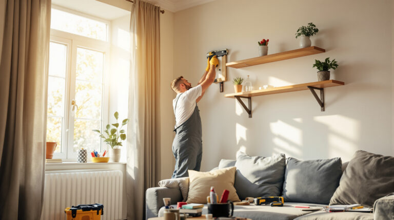 - Fixation d’étagères et pose de rideaux